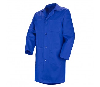 Tissu : 65% Coton - 35% Polyester - 250 gr. Col transformable. Fermeture par pressions cachées. Manches montées devant et raglan dos. 2 poches poitrine à rabat fermé et 1 poche stylo. Poignets ajustables par pressions. 2 poches basses. Longueur dos : 100 cm. Mercerie tout plastique. Adapté entretien industriel.