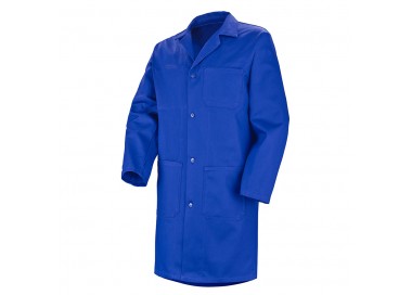 Tissu : 65% Coton - 35% Polyester - 300 gr. Col montant. Fermeture à glissière sous-patte avec grippers plastiques cachés. Manches montées devant et raglan dos. 2 poches poitrine à rabat fermé avec poche stylo. Poignets rapportés fermés par pressions. Poches basses repose main. Ceinture avec patte de serrage. Mercerie tout plastique. Adapté entretien industriel.